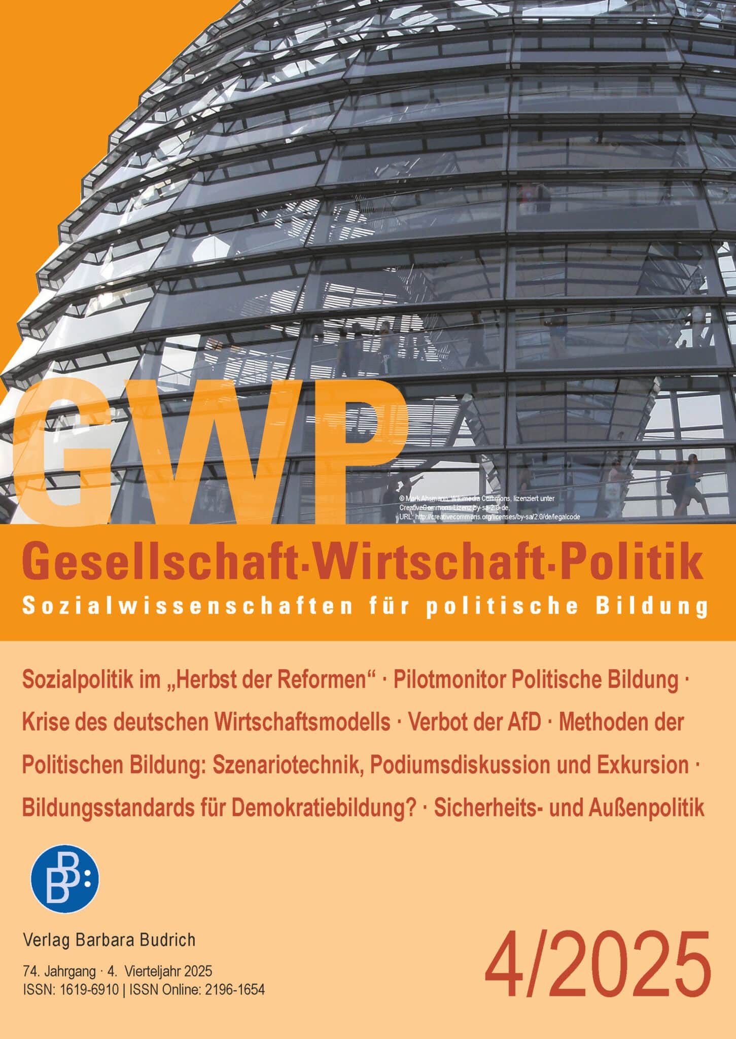 GWP – Gesellschaft. Wirtschaft. Politik erschließt die Fachwissenschaften Soziologie, Ökonomie und Politik für das sozialwissenschaftliche Studium und die Bildungspraxis. GWP macht das aktuelle Geschehen mittels wissenschaftlicher Analyse durchschaubar. GWP – Gesellschaft. Wirtschaft. Politik unterstützt Lernen und Lehre durch eine Vielfalt an Textsorten: Fachaufsätze, aktuelle Analysen, Essays und Kontroversen und mehr. Eine Charakteristik der einzelnen Rubriken von GWP finden Sie hier. Aktuelle Ergänzungen und Hinweise bietet die neue Seite gwpextra.budrich.eu.